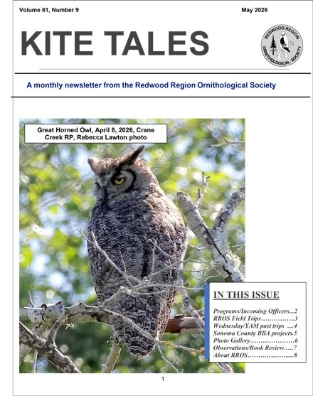 This is a new opportunity to bird with RROS starting this year. One of our members will take us on a relaxed bird walk at their local patch or favorite place. These will be at a more casual pace, social, and perfect for new birders.